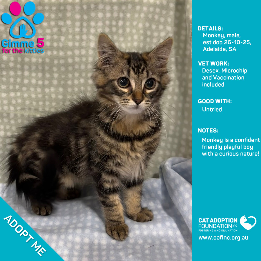 Donate to Monkey at Cat Adoption Foundation Incorporated via Shout