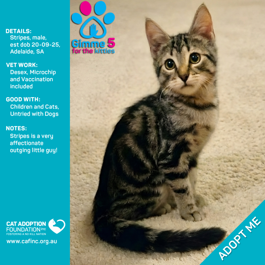 Donate to Stripes at Cat Adoption Foundation Incorporated via Shout
