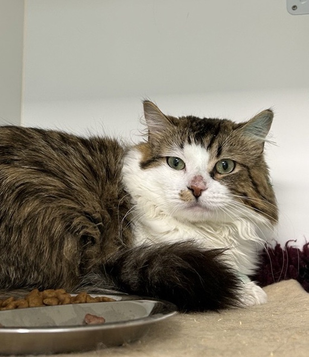 Pudding is a shy boy at first, but with patience and a gentle approach, he slowly begins to relax and show his warm, endearing nature. Once he feels safe, his quiet charm shines through, revealing the lovely little gentleman we know him to be. He will thrive as an indoor cat in a calm, cat savvy home with older teens or adults who are happy to go at his pace and help him grow in confidence. Pudding may also do well with another calm feline friend, with slow and considered introductions. With his beautiful fluffy coat, Pudding will need regular brushing to keep him comfortable and mat free. He will adore plenty of enrichment to keep him mentally and physically stimulated. Think scratching posts, window perches for watching the world go by, puzzle feeders, and cozy hideaways where he can relax and feel secure.