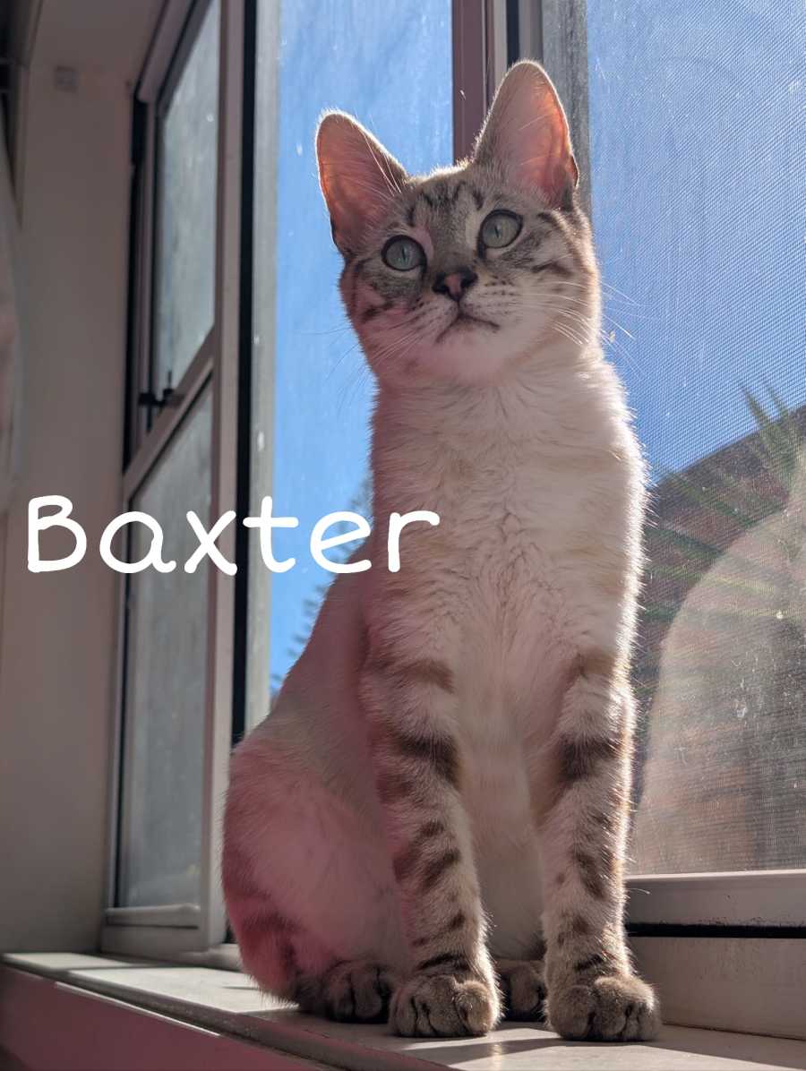 He can take a little longer to relax than his brother Benji, but once he feels safe, Baxterâs true personality shines. Heâs sassy, playful, and an absolute cuddle bug who loves nothing more than snuggling up and sleeping on the bed. Baxter shares a close bond with his brother Benji, and ideally they would be adopted together so they can continue being the perfect duo.