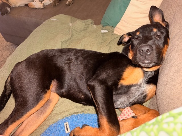 Sparks in looking for her newest best friends. As a growing puppy she has plenty to learn, but is already learning so much. She listens very well and is a calm young pup. She likes the company of other dogs, and will happily hang out with them. She is slowly learning to play with her new himan friends as well.