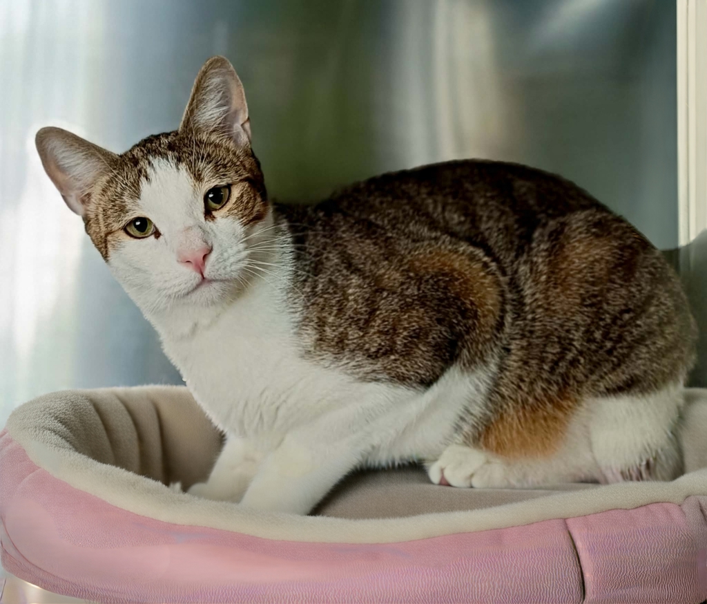 Samba is a happy, outgoing young tabby-and-white boy with a truly lovely nature. He's friendly, confident, and enjoys being part of the action, whether that's playtime or hanging out with his people. Samba has lived with another cat and did well, so he may enjoy a feline friend in his new home. With his affectionate personality and cheerful spirit, Samba is sure to bring joy, companionship, and lots of smiles to his forever family.