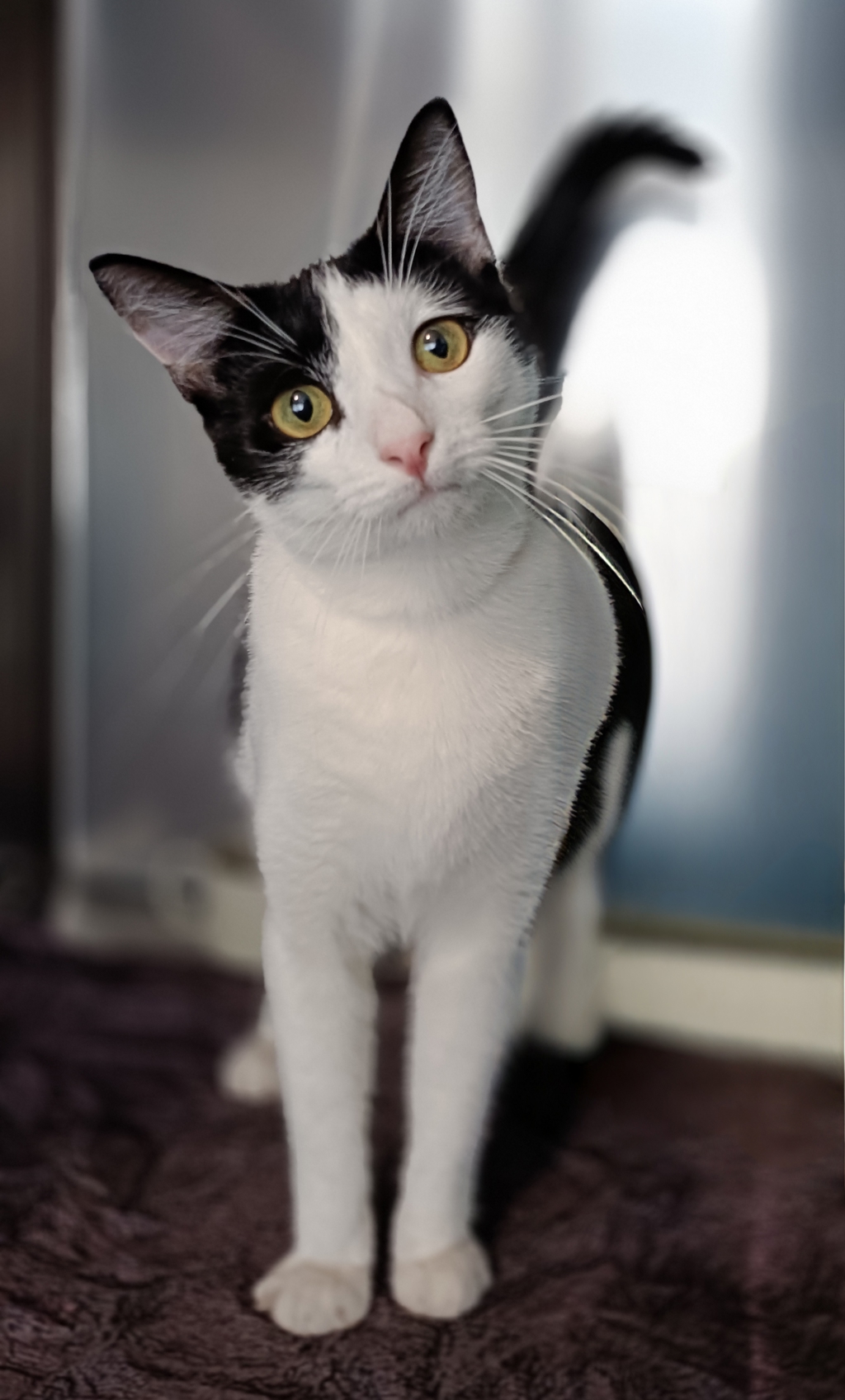 Baker is a sweet, curious young black-and-white boy who's always ready to knead his way into your heart. With his gentle nature and playful spark, he's the perfect mix of cuddle buddy and daily entertainment. Baker loves cozy naps, window watching, and being close to his people-whether that's helping you relax or supervising from a sunny spot. If you're looking for a loyal, affectionate companion who brings warmth and comfort to your home, Baker is ready to come home with you.