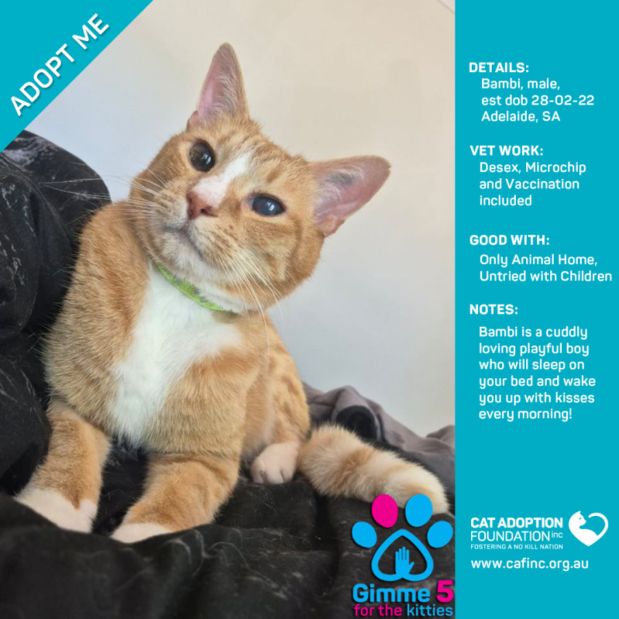 Donate to Bambi at Cat Adoption Foundation Incorporated via Shout