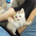 Lyra is beautiful healthy white and tabby patched kitten. She has been the first to hit every milestone in her litter. A little quieter than some of her siblings she can sometimes be found snoozing in her carrier. She does love to play with her siblings, and climb into bowls and baskets that are left unattended. Lyra taught her siblings to rock a bowl back and forth and seems to enjoy this very much! Lyra also likes watching Stranger Things with her foster carer.