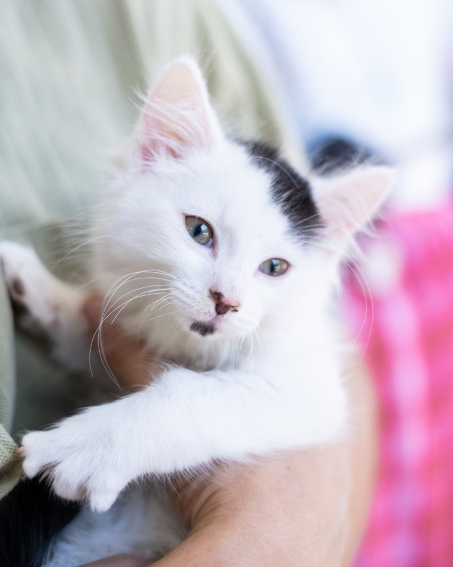 Wrapped up in the softest, fluffiest black-and-white fur, Dice is as cuddly as she is mischievous. She’s full of energy and joy, and thrives when she has plenty of enrichment — climbing towers are a must, and toys are essential for helping her burn off that playful kitten enthusiasm. Wand toys, balls, tunnels… Dice will happily test them all 🧸✨
