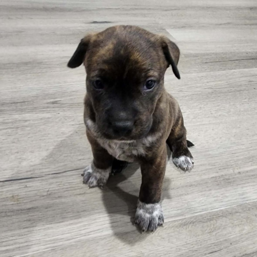 Their mum, Mia, is a mastiff x staffy and a lovely medium-sized dog with a gentle, people-loving nature. Some of the pups have natural stumpy tails, so we believe their dad was likely a stumpy tail cattle dog. Based on this, the pups are expected to grow into medium-sized dogs who will enjoy being active, engaged family companions.
