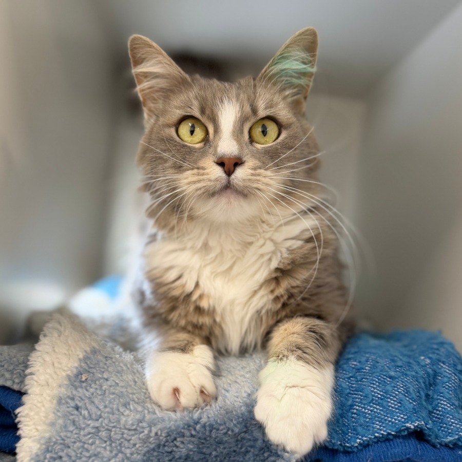 Sweet, social, and people-oriented, Eve thrives on human companionship and enjoys being part of your daily routine. She’s the kind of cat who makes a house feel like home, always happy to greet you and remind you she’s there for cuddles and love.