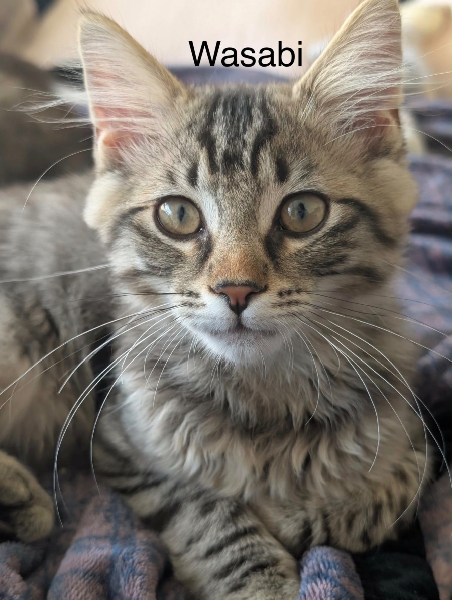 Wasabi is not just a pretty face; his charming personality and loving nature make him an ideal addition to families of all shapes and sizes. Whether you're ready to welcome Wasabi into your home with or without his sister, you can expect endless entertainment, love, and companionship from this delightful feline.