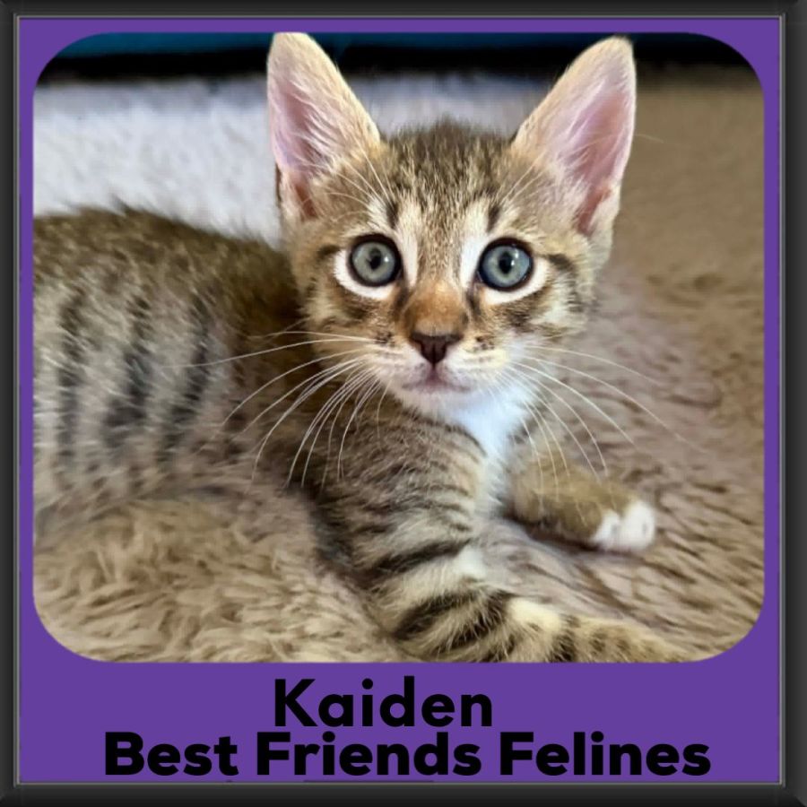 Kaiden is a bright, cheeky little short-haired tabby boy with a bold spirit and a curious mind. Smart, switched-on, and full of personality, he’s the kitten who likes to do things his own way. If the others are racing around, Kaiden might decide it’s nap time — and when everyone else settles down, he’s usually off discovering something new.