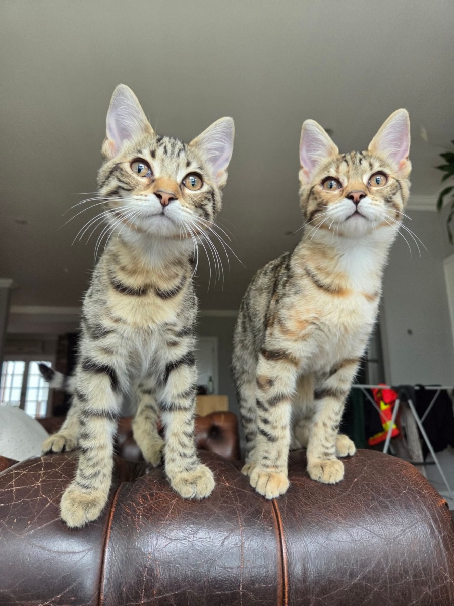 Both babies are very playful, adorable, sweet and very cute! They are affectionate, quirky and the kind of kittens to make themselves at home quickly! They adore people and will not take long to bond closely with you.
