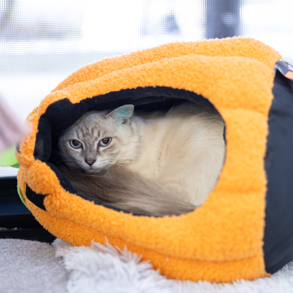 Remi is a sweet, gentle boy who just needs a little time and patience to warm up. He may be shy at first, but once he feels safe and comfortable, his quiet affection begins to shine through. Remi is the kind of cat who will form a deep bond with someone willing to let him move at his own pace.