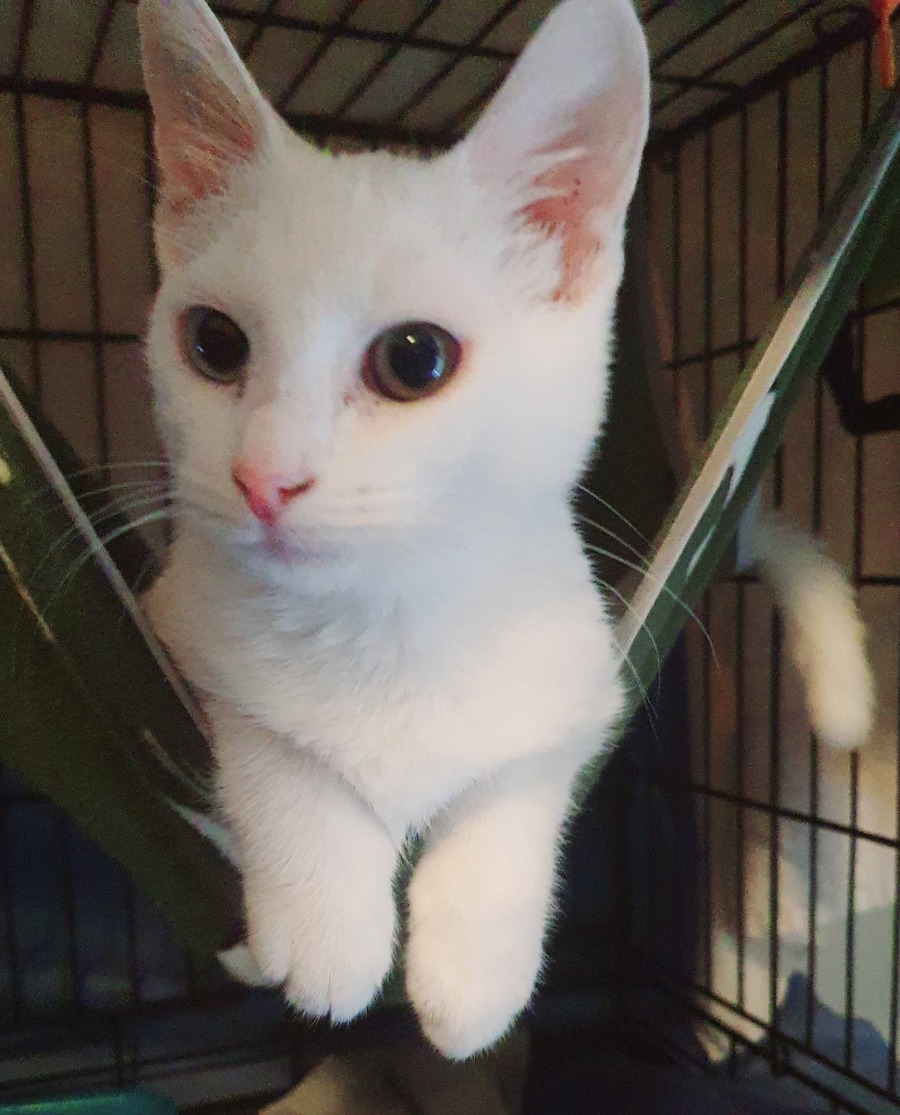 Given that Elsa is deaf, this means she can be a little uncertain at times with her surroundings if something changes suddenly but this is very brief until she figures it out or gets a gentle reorientation or reminder. Her other senses are spot on. Despite her deafness she manages to get around like a full sighted kitten and is unafraid of her surroundings and people if she feels safe.