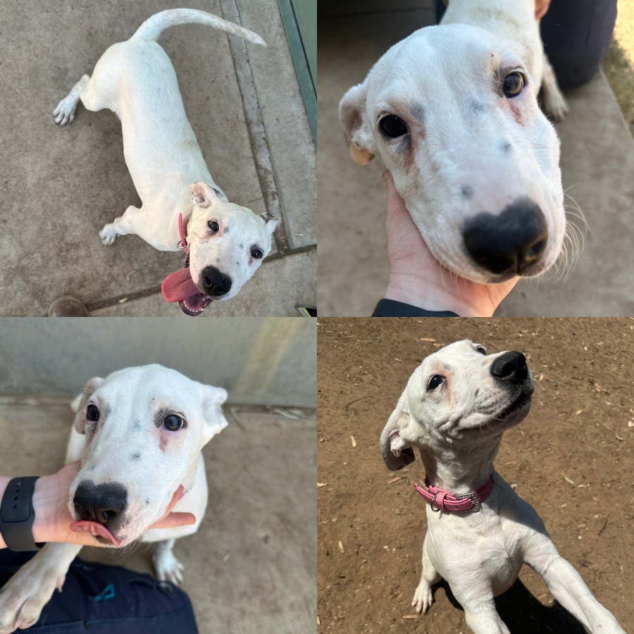 Snowy is a gorgeous 14-week-old female Bull Arab X with a beautiful white and black coat and the sweetest nature to match. She’s a super sweet, affectionate pup who loves people!💕 With correct introductions, Snowy may do well in a home with kids, cats 🐱, and other dogs 🐕.
