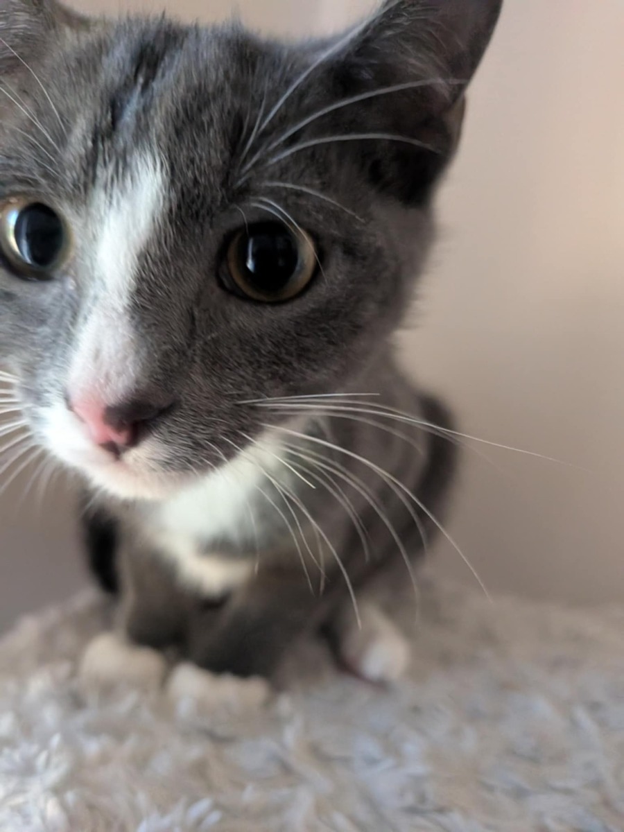 This spirited kitty is a master at chasing wiggly wands, showing off an athleticism that will keep you entertained for hours. He's a cheeky little character who loves to explore his surroundings with playful curiosity. Filled with energy and spunk, Jay loves engaging in all forms of play, from interactive toys to snuggle time.
