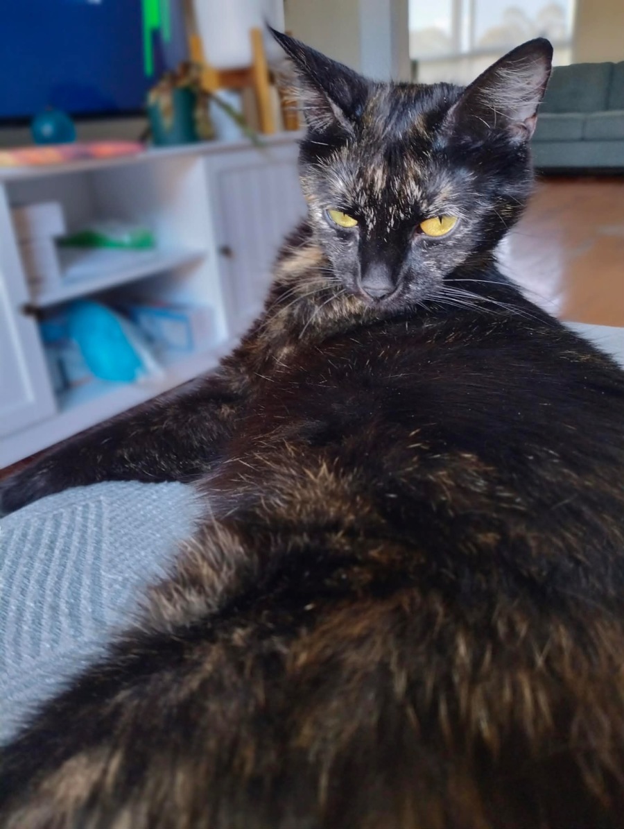 At around 12 months old, she still has that playful, kitten-like curiosity, paired with the sweet nature of a cat who has already proven herself to be a gentle mum.