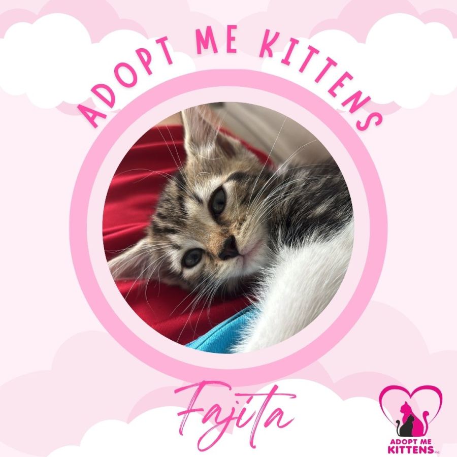 Fajita is playful, chaotic, and always full of surprises. She has a talent for finding the weirdest places to nap and somehow makes every moment unpredictable. Between her adventures, she loves cuddling up for a cozy snuggle and she’ll happily meow until you give her just one more pet.