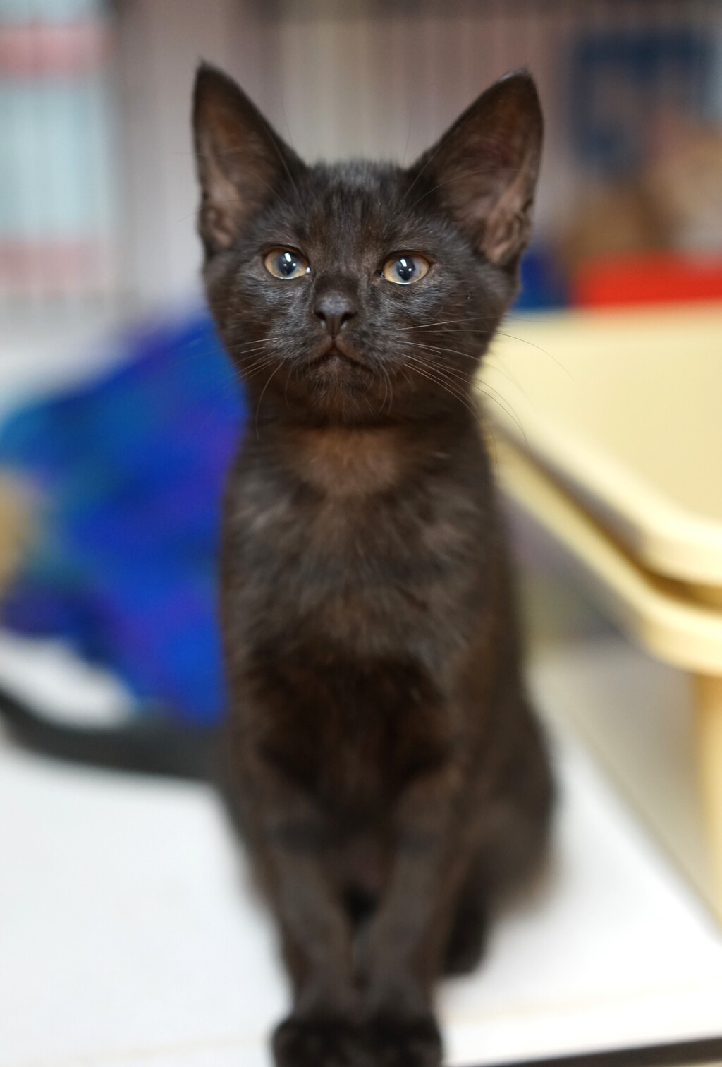 Ares is a gentle, observant little kitten with a soft spirit and a curious mind. Despite her strong name, she's a sweet, sensitive girl who prefers to take her time when exploring new spaces and meeting new people. Once she feels safe, Ares reveals her playful side-batting at toys, chasing little shadows, and curling up close for quiet affection.