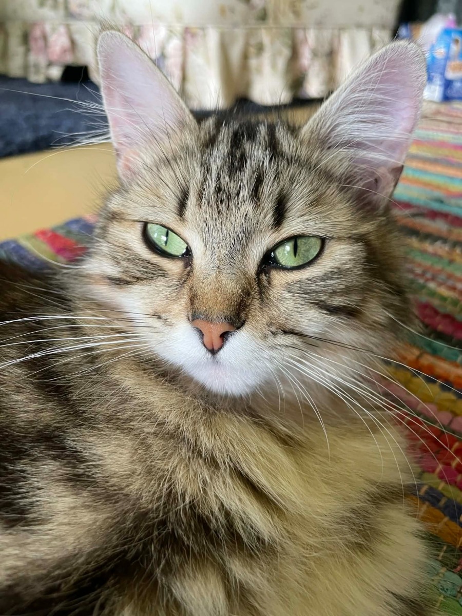 Confident, friendly & ridiculously affectionate, Penny loves people, sleeps on the bed, enjoys being carried, and takes her job as a professional snuggler very seriously. She has long, elegant whiskers seem to go on forever, perfectly framing her stunning green eyes.