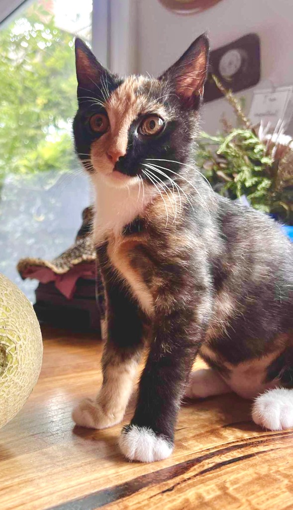 Clementine is a tortoiseshell bundle of pure charm, confidence & quirks. Equal parts sweetness and spriit, sheโs the kind of kitten who barrels through life with enthusiasm and zero self-doubt.