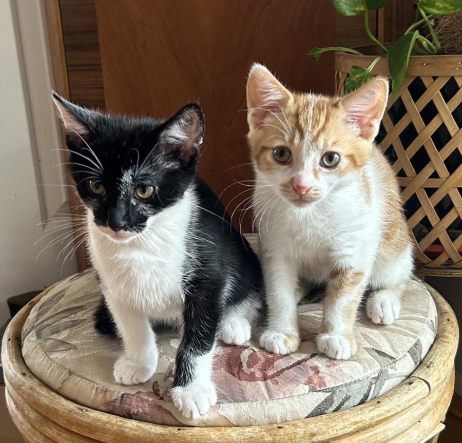 He is very cat social and must be adopted to a home with an existing cat or with his adorable sibling Moss. Kittens do much better with a cat friend; it’s worth researching “solo kitten syndrome” to see why. Thorn is also currently in a foster home with a gentle dog.