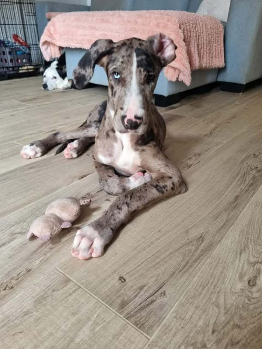 He has absolutely amazed us and within 3 weeks he’s come on in leaps and bounds and is now resembling the magnificent Dane mix we knew was in there