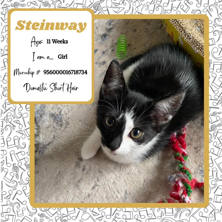 With her gentle, loving nature, Steinway will make a wonderful companion cat and a loyal little shadow. If you’re looking for a kitten who truly bonds with her people, she could be the one. 🐾💕
