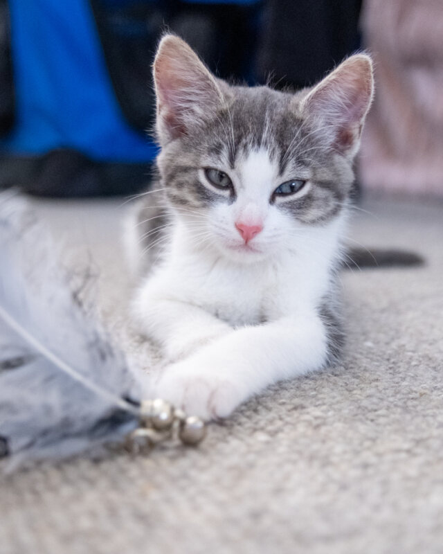 He has a lovely balance of playfulness and calm, enjoying a standard amount of play throughout the day. Jupiter adores play fighting with his foster siblings and is always keen to chase toys that move, especially crinkle balls, pompoms and toy mice. One of his funniest habits is enthusiastically jumping at the window trying to catch flies, even though he never quite succeeds. His determination makes it endlessly entertaining.