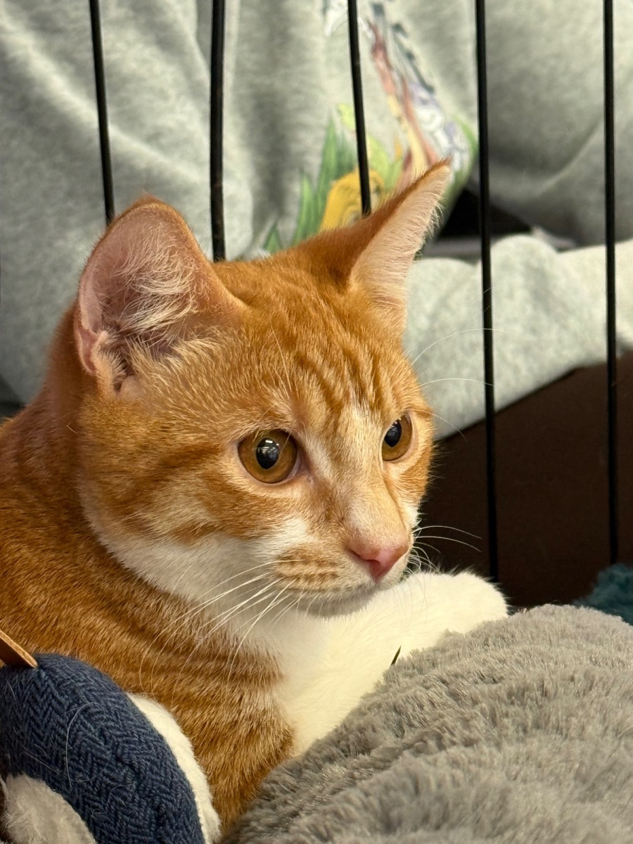 Cheddar may require a little extra attention after his visits to the litter box, given his occasional bathroom mishaps, but this small need for care is easily outweighed by his affection and charm. Open-hearted and perpetually happy, Cheddar is ready to join a home that appreciates his vocal, playful, and friendly nature. Whether it's a lively family or a quieter abode, Cheddar’s vibrant spirit is the purr-fect addition to any loving household.