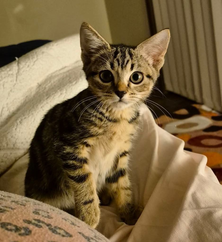 This sweet young kitten is learning all about the comforts of home life in foster care, where she’s discovering toys, warm beds, and the joy of human company. Like many kittens her age, Fiona is curious, playful, and still working out the big wide world, often showing a mix of gentle confidence and endearing kitten mischief.