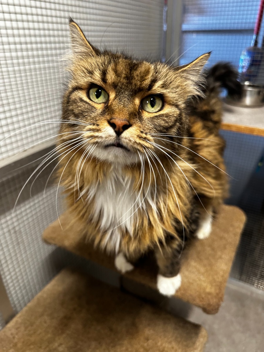 Allow me to introduce Minky, a medium-haired tortoiseshell lady of refined tastes and quietly impeccable manners. With her elegant presence and softly luxurious coat, Minky carries herself like a cat who knows she deserves the finer things in life - and frankly, she’s not wrong.