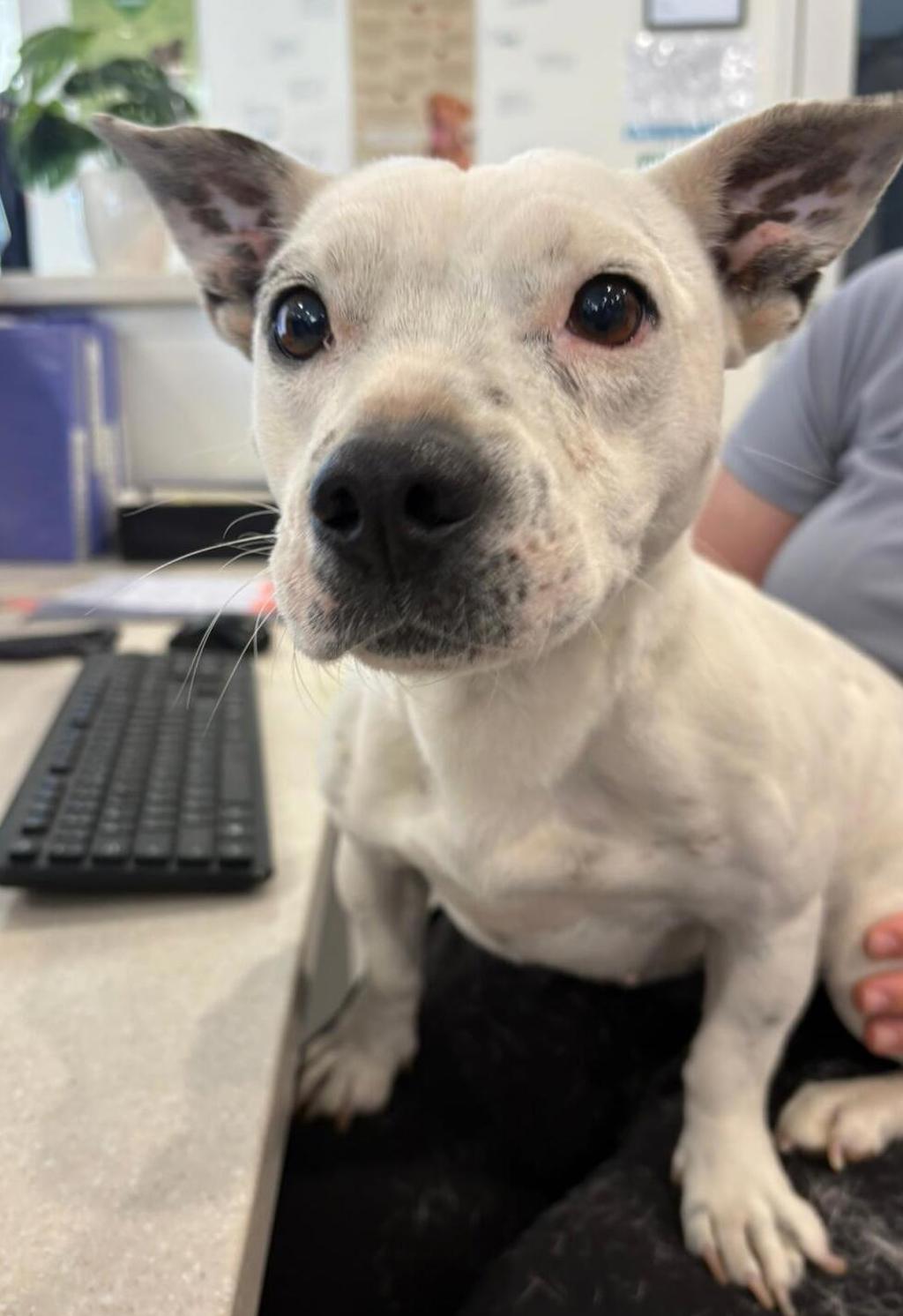 While Lily may resemble a seal in most of her photos, don't be fooled - she has the most adorable spotted Staffy ears, and when she's feeling brave and confident, they pop up proudly on top of her head and melt hearts instantly.