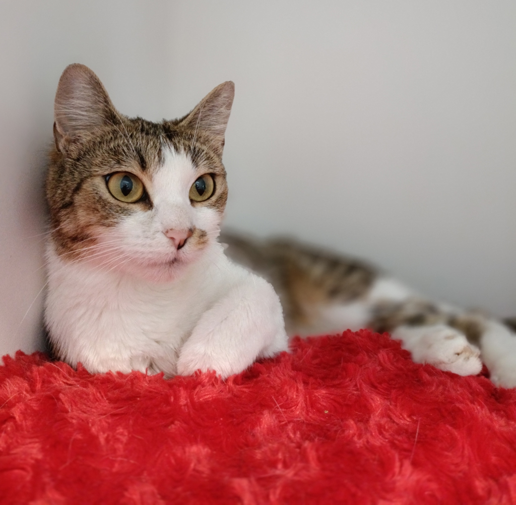Cookie is a sweet little tabby-and-white girl with big, bright eyes that melt your heart. A young mum who's done an amazing job raising a couple of litters, Cookie is now desexed and ready to enjoy a life that's all about her. She's a small cat with a gentle presence and a calm, quiet nature.