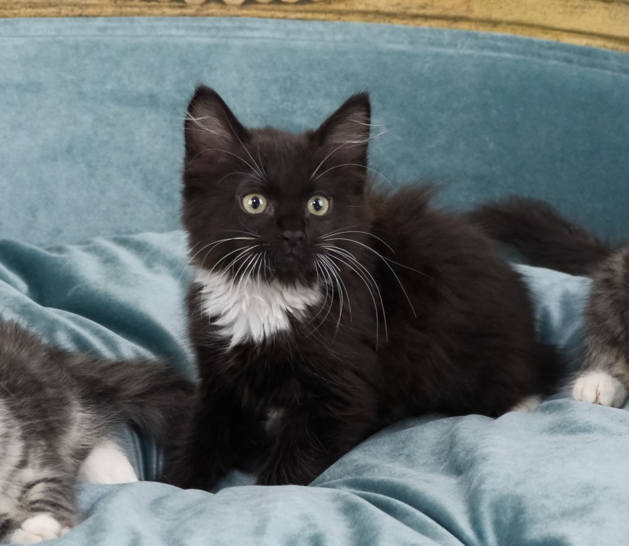 Bacon is a young black and white tuxedo boy with a personality as bright as his markings. He’s playful, energetic, and always ready to turn an ordinary moment into a game. Whether he’s chasing a toy, exploring a new corner of the house, or zooming past with kitten confidence, he brings a wonderful spark of joy wherever he goes. When he’s finished with his adventures, he happily transforms into a snuggly, affectionate companion who loves nothing more than curling up close.
