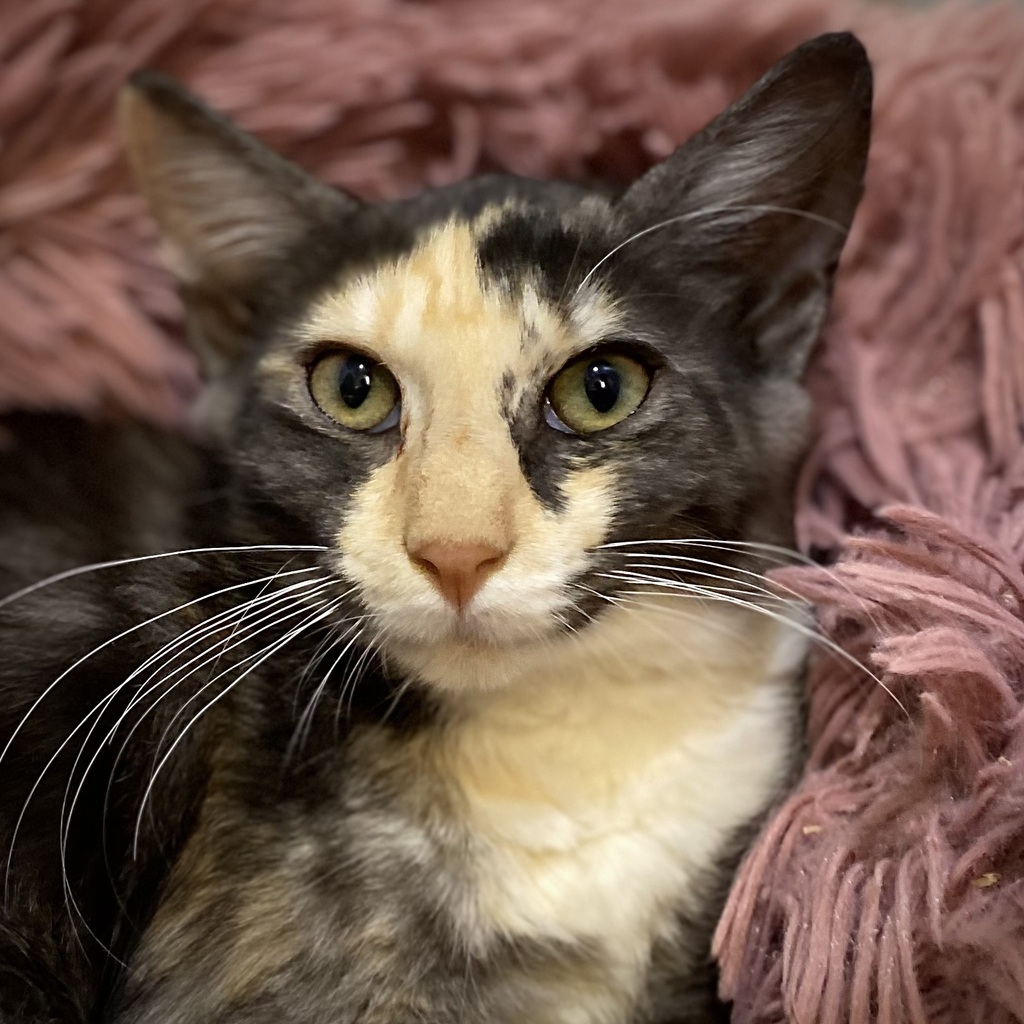 When you have a kitty-cat like Lola, everyday will be a wonderful time sharing cuddles and affection with her. She is oh-so lovely! Lola has a very gentle, quiet and loving nature. She'll be watching your every move in the house with her beautiful green/yellow eyes. Her smooth, soft calico-coloured coat is very striking. Suggestions for her care:-