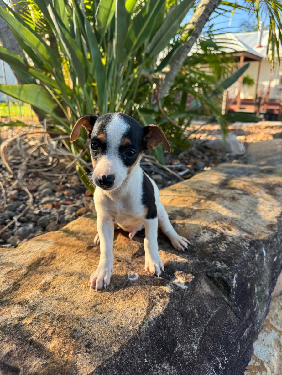 Meet Diesel Jr, affectionately known as DJ, a 10-week-old mini Foxie cross Jack Russell Terrier pup that's bursting with curiosity and enthusiasm. With unparalleled energy levels characteristic of his breed mix, DJ is ready to embark on the adventure called life!
