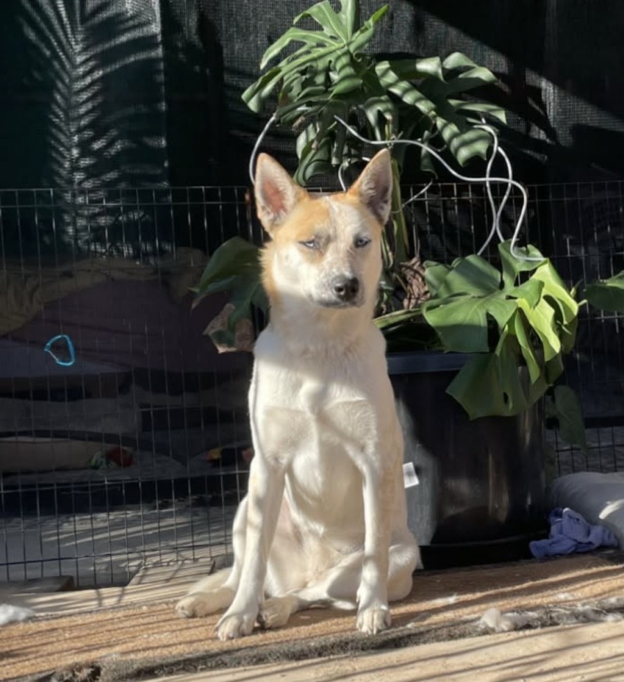 Meet Roxy, a captivating blend of Husky and Cattle Dog known for her beautiful energy and loyalty. At 2.6 years old and weighing in the mid-20 kg range, Roxy is a striking medium-sized dog whose vibrant spirit is complemented by her stunning appearance.