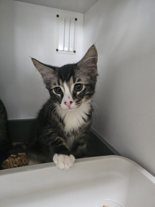 Hey there, I'm Vance. I’m a friendly and affectionate kitten who would suit most homes! My playful paws are always ready to pounce on anything that moves. I love playing with wand toys and mysterious shadows on the wall! When I’m finished playing, I love nothing more than finding a warm lap to curl up in. I have perfected the art of the irresistible purr. It's like my secret weapon for getting all the cuddles and chin scratches I could ever want. Life's just one big, exciting string of moments, and I'm here to make every second count – whether I'm chasing my tail or sharing some purr-fectly quiet time with my favourite humans. So, if you're up for a bundle of furry fun and a lifetime of companionship, please consider adopting me!