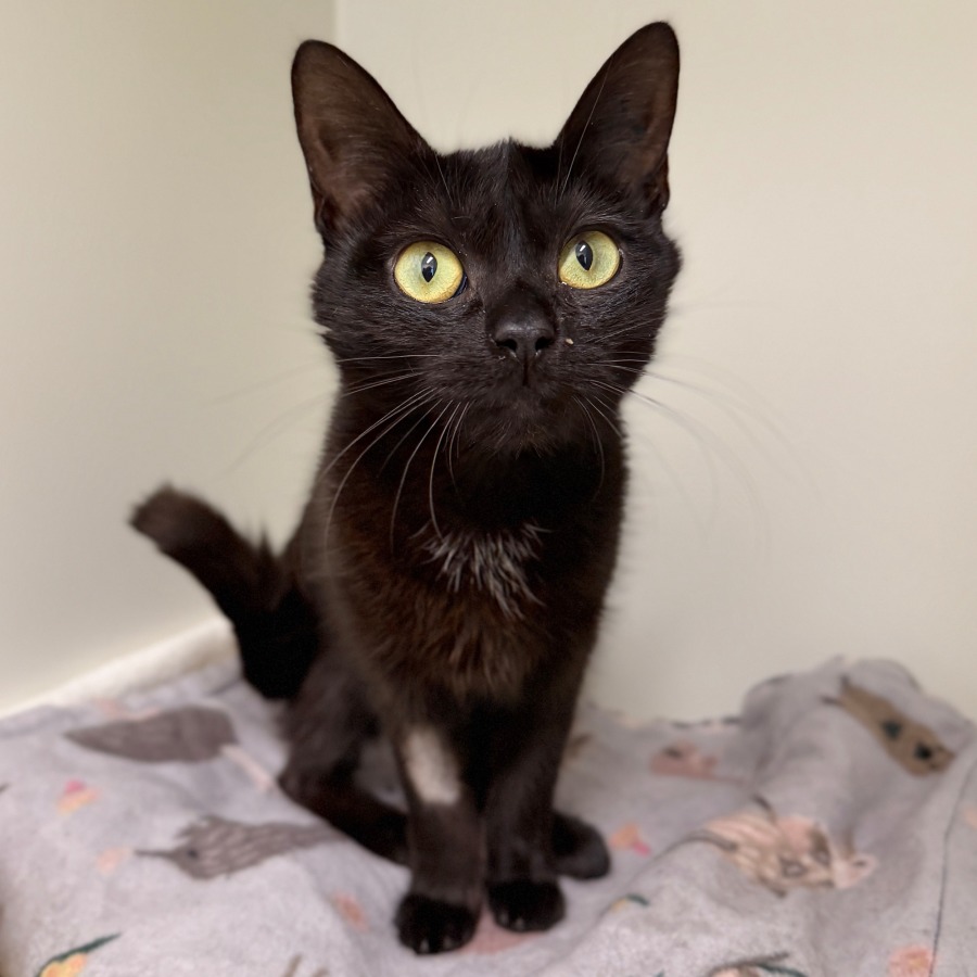 Emoji is a gorgeous little black cat with a whole lot of love to give.