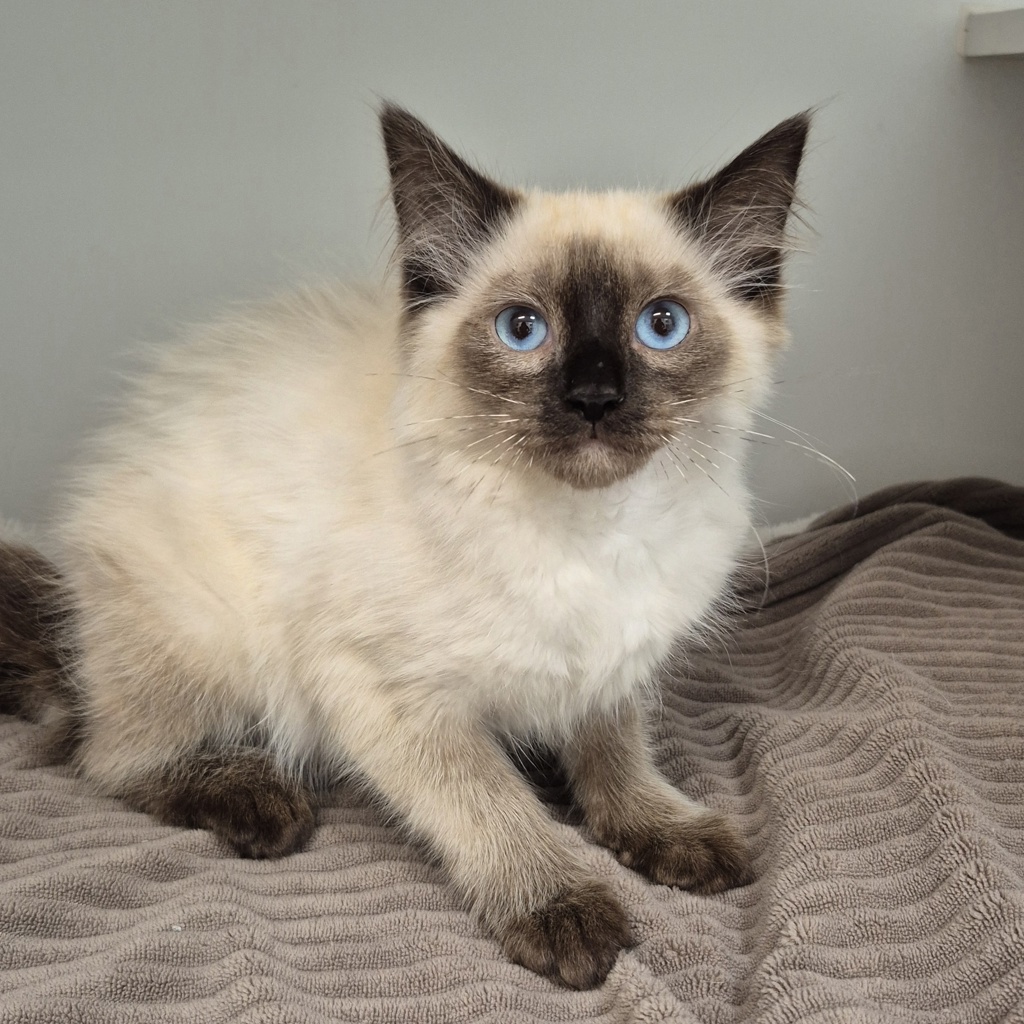 We're a bunch of adorable kittens aged from 8 weeks and up, each with our own developing personalities. Some of us are bold and playful, some snuggly, and some a little shy-but all of us love toys, especially anything that rolls or jingles!