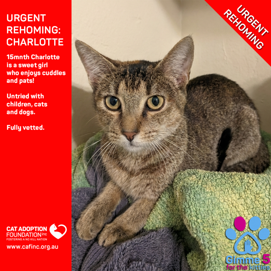 Donate to Charlotte at Cat Adoption Foundation Incorporated via Shout