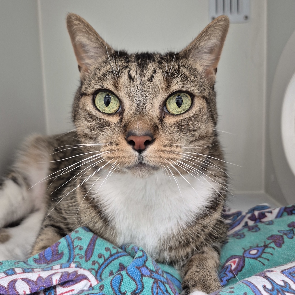If you're searching for a cat with true character and unbeatable best-mate energy, Taystee is your girl. She greets his people with powerful, rumbling purrs full of love and excitement, and she's more than happy to present her belly in exchange for ear scratches and the occasional treat. Treats in moderation though please, Taystee is currently working on her beach body.