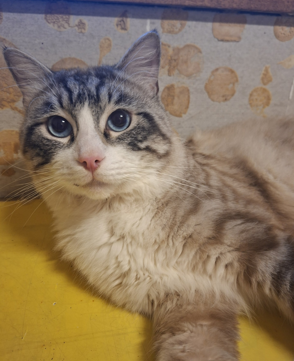 Oddball is a young boy who is wonderfully talkative, very social, and always keen to be part of whatever's going on. His favourite place to be is right on your lap, soaking up plenty of pats and affection. Oddball would thrive in an indoor home with an understanding family who can offer him a calm, relaxing environment to help him settle in comfortably. He'll happily entertain himself with lots of toys, cat towers, and cozy resting spots to lounge and observe the world. Oddball may also enjoy the companionship of another friendly cat.