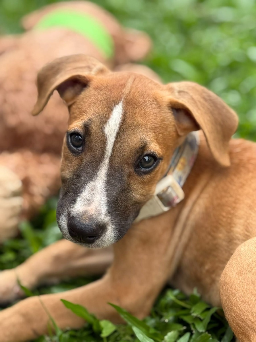 Slyrah is a beautiful little pup with a gentle, sweet nature and a twinkle of curiosity in her eyes. She loves exploring her surroundings, discovering new smells, and joining in on all the fun — whether it’s playing with her siblings or sneaking in extra cuddles with her humans.