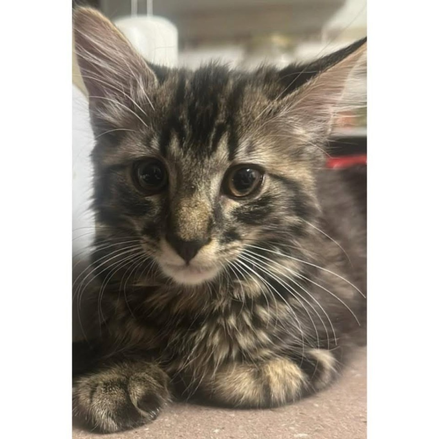Alice is a sweet, playful girl with soft long tabby fur and a purry, affectionate nature. She loves zoomies, climbing, toys, and cosy naps in a sunny window. Curious and mischievous, Alice enjoys exploring her world and never says no to creamy treats. As a longer-haired kitten, she will need regular brushing to keep her coat tangle-free.
