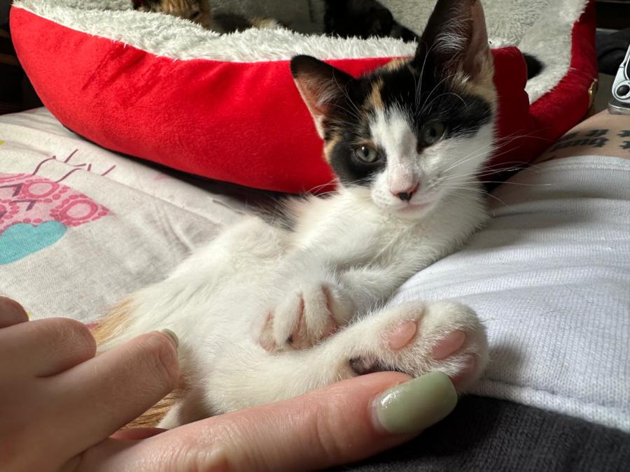 Maple is a quiet sweet girl who is happy just to chill and watch the world go by. When her sisters are being too rowdy, she likes to remove herself from the chaos and have a snuggle next to her foster carer. Rough play just isn't her thing.