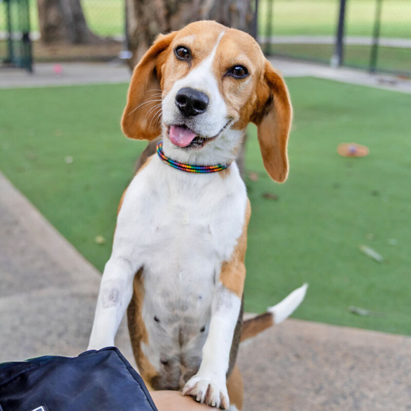 A secure backyard with 6-foot fencing is essential to keep Joey safe, as her Beagle nose may occasionally lead her on little adventures. She can suit a full-time working household, provided her needs for companionship, routine, and enrichment are well met. Joey is also open to meeting pet-savvy children who understand dog behaviour and respect her boundaries.