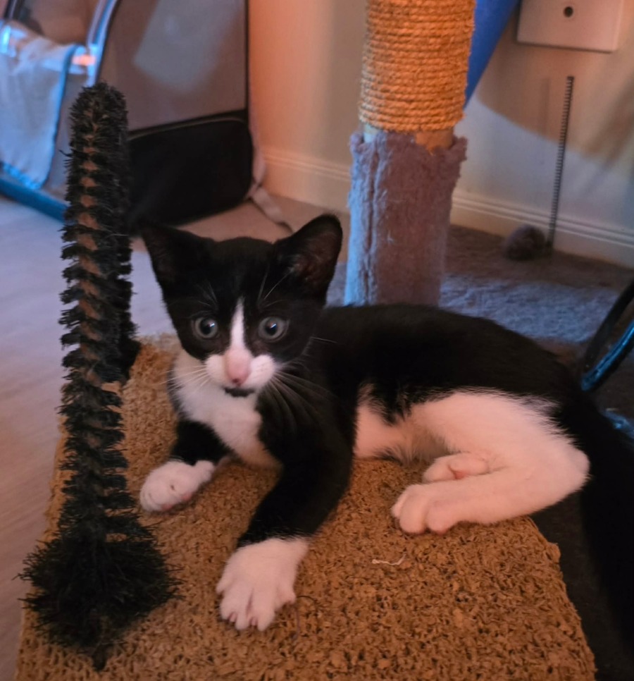 Meet Comet, a striking tuxedo cat with an undeniable flair for style and charm. This dapper feline is sure to win you over with his adorable antics and playfully outgoing nature. As soon as you lay eyes on his sleek black and white coat, you'll understand why he's truly a standout.