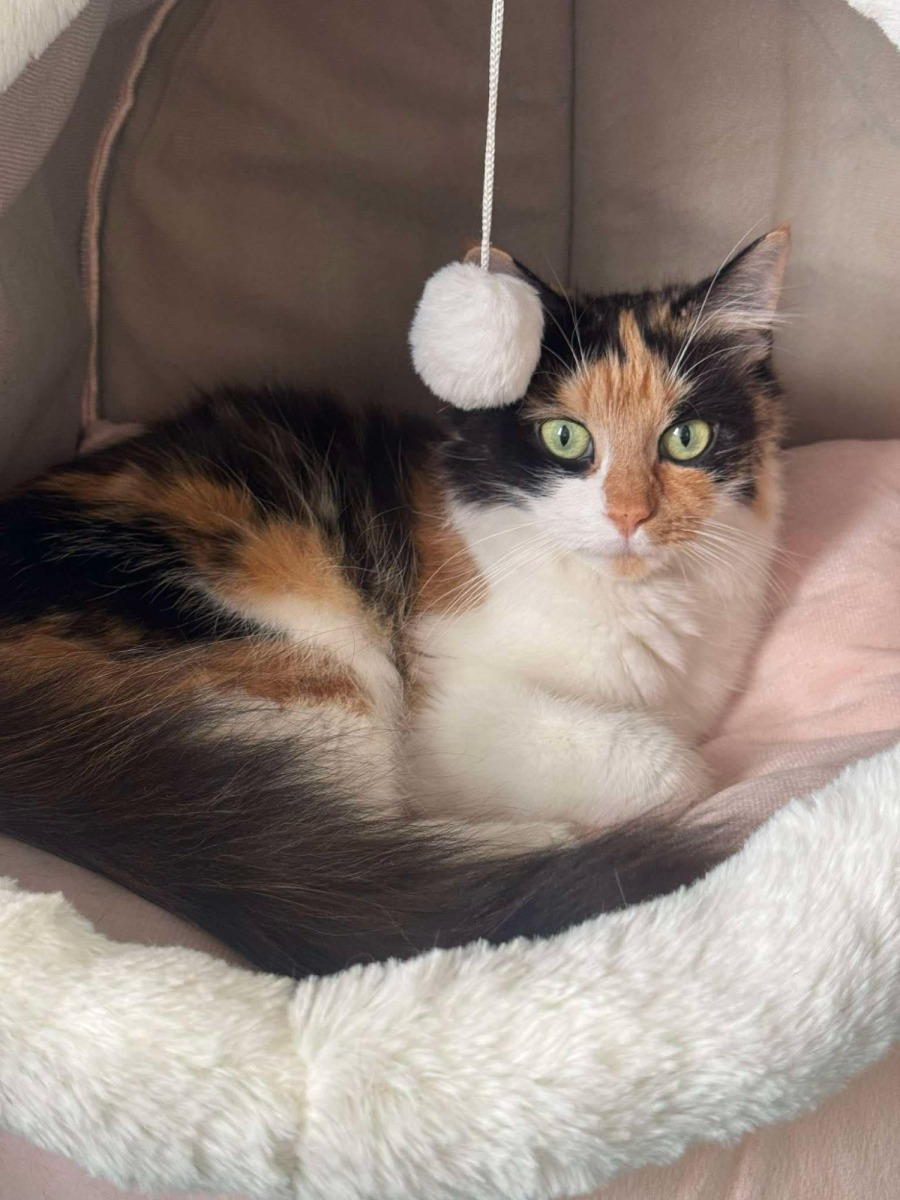 Jemima is a gorgeous calico kitten with a heart as colourful as her coat. She’s incredibly friendly, loves being around people, and is a total cuddlebug once she settles in. If you’re sitting down, chances are Jemima will be right there with you—snuggled close and purring away.