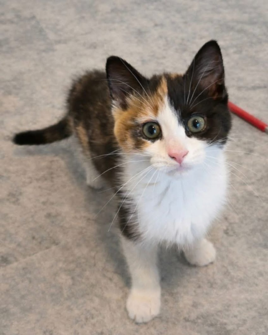 Gingerbread is a truly special little girl with a coat as unique as her personality. Every patch feels carefully painted, like she was designed one brushstroke at a time. She is the kind of kitten you notice twice. Once for her beauty and again for her calm, thoughtful presence.